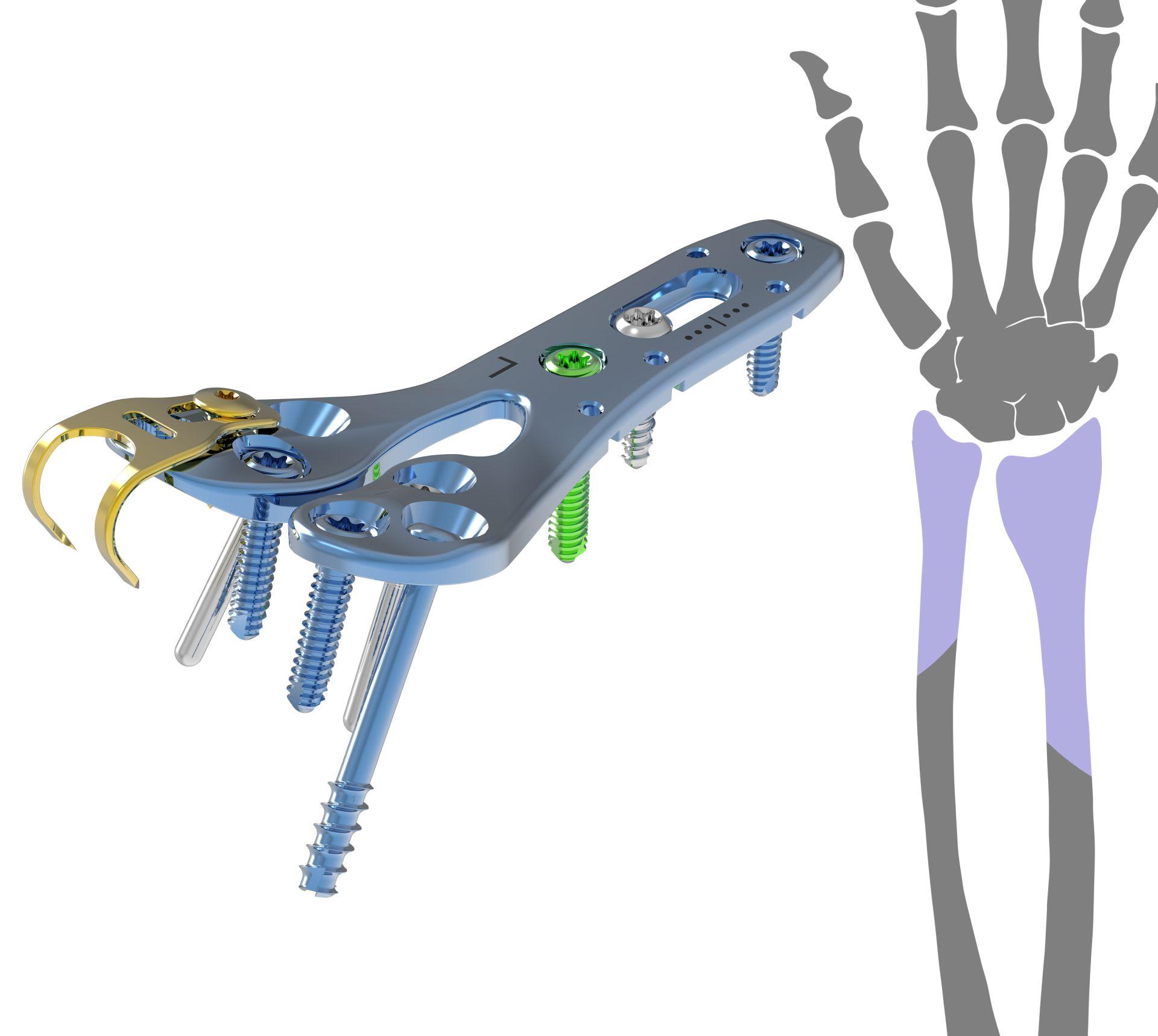 Variable-angle locking; Low profile plates; Anatomic design; Left and Right plate options; Titanium alloy (Ti-6Al-4V) for plates & screws; Self-tapping screws; Rounded plate ends; Torx screw driver.